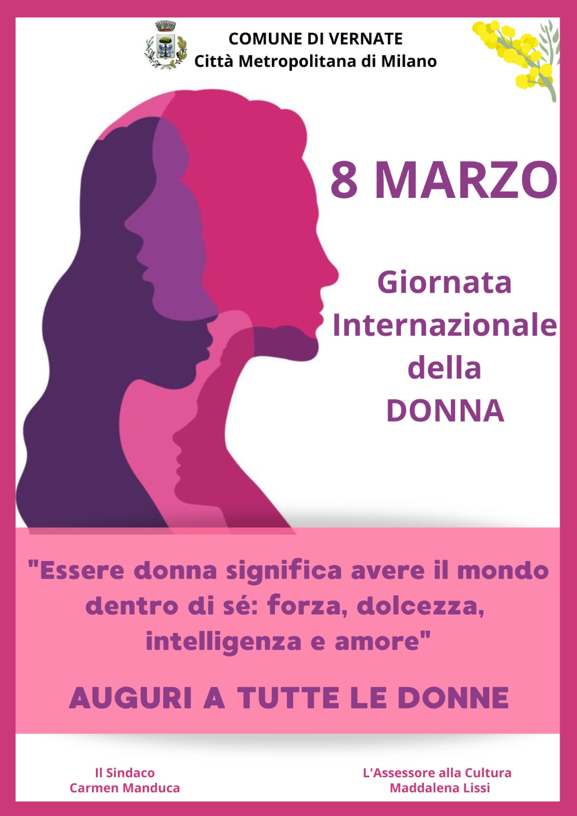 Vernate (6 marzo 2026) - Essere donna significa avere il mondo dentro di sé: forza, dolcezza, intelligenza e amore.