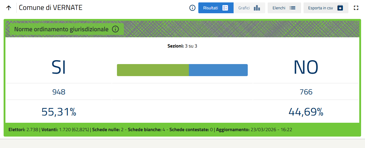 In allegato i risultati finali del Referendum costituzionale del 22 e 23 marzo 2026.